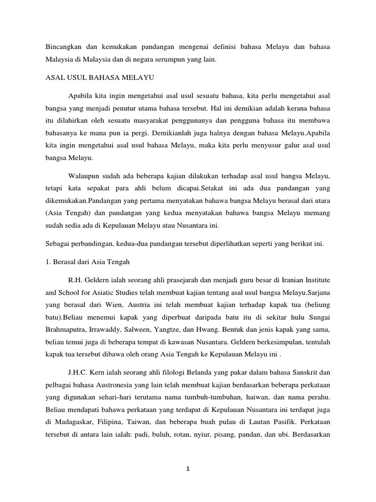 Asal Usul Bahasa Dan Bangsa Melayu Artikel