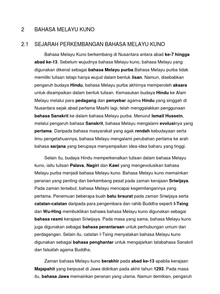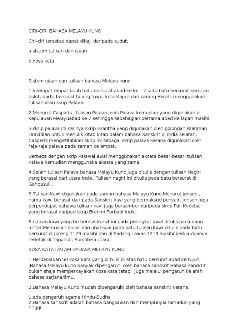 Bahasa Melayu Kuno Ciri Ciri Pdf